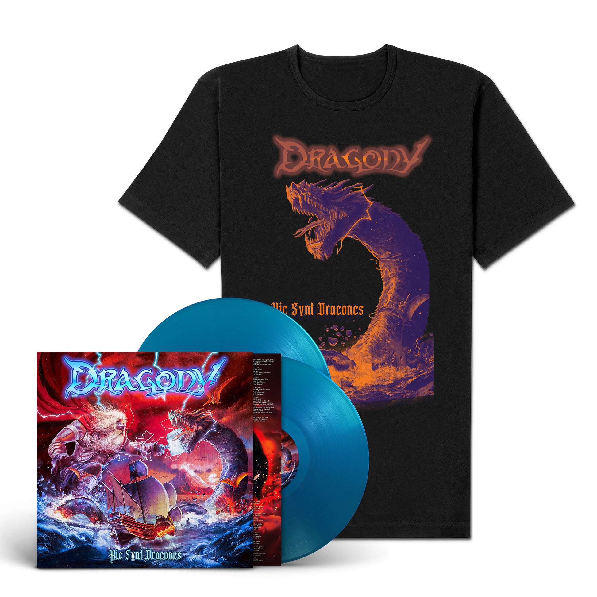 The bundle comes with the Dragony "Hic Svnt Dracones" LP and the exclusive "Dracones" Shirt (S, M, L, XL, or XXL).
