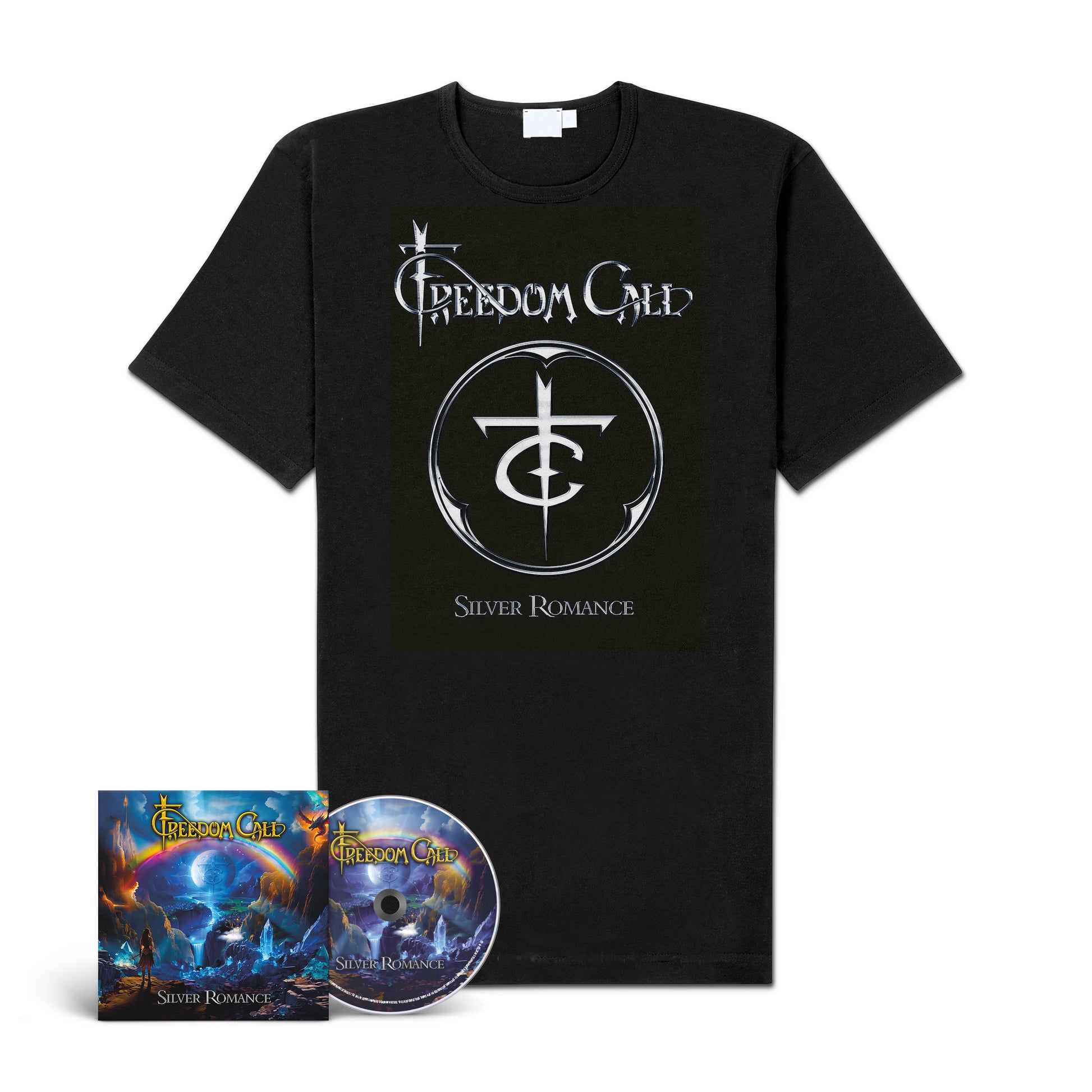 The bundle comes with the Freedom Call "Silver Romance" CD and the "Silver" Shirt (S, M, L, XL, or XXL).