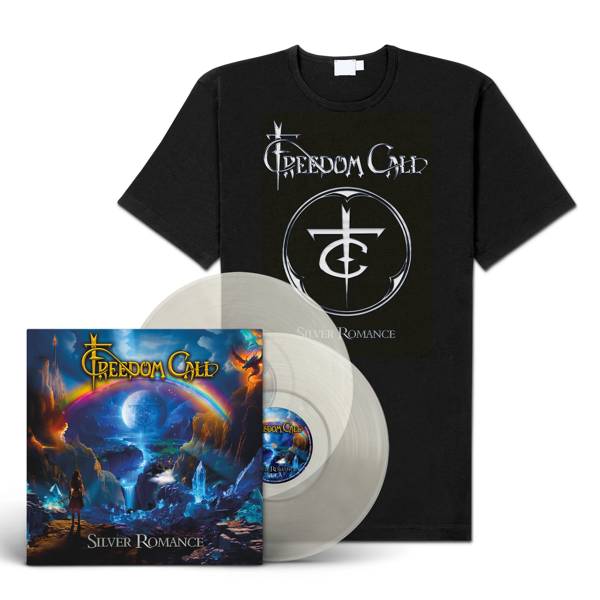 The bundle comes with the Freedom Call "Silver Romance" LP and the "Silver" Shirt (S, M, L, XL, or XXL).