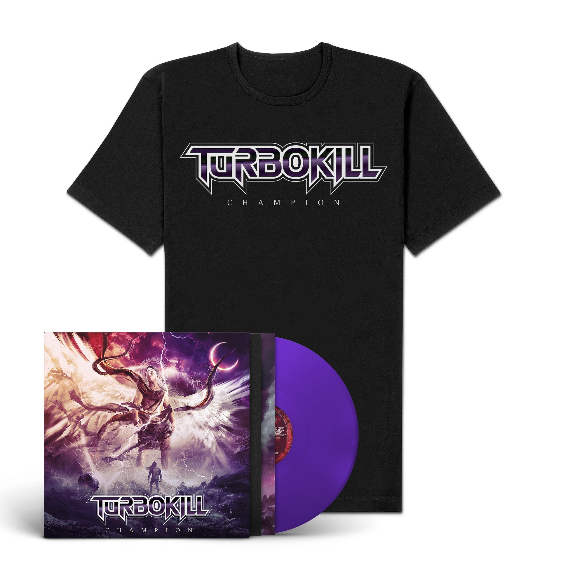 The bundle comes with the Turbokill "Champion" LP and the exclusive "Champion" Shirt (S, M, L, XL, or XXL)